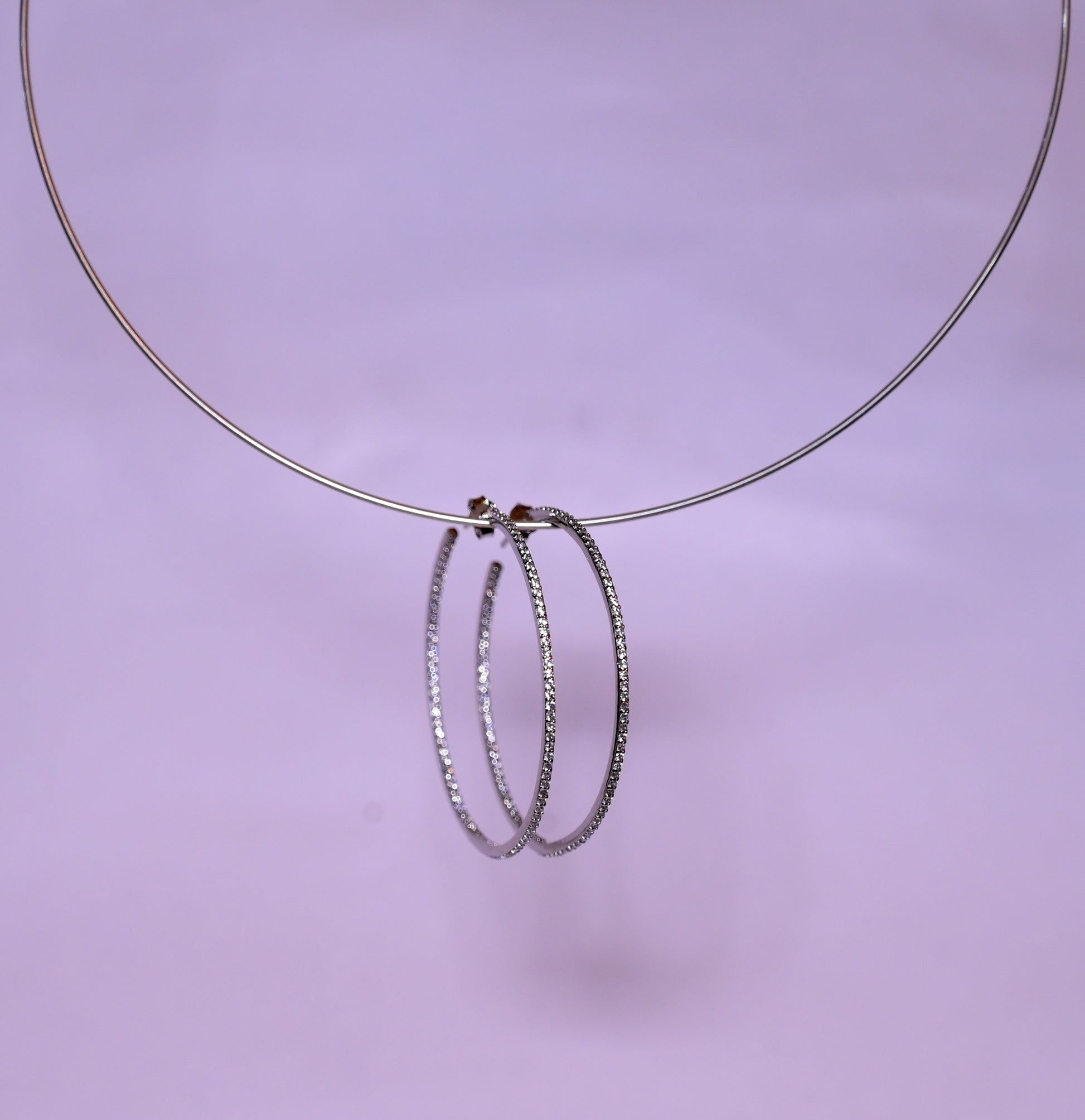 sleek hoops fully encrusted with shimmering white stones on both sides, ensuring sparkle from every angle.